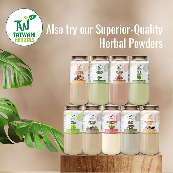 TATWANI HERBALS Triphala Powder (100g) is a premium, organic blend of three natural fruits, known for its traditional uses in promoting overall well-being. This finely ground Triphala Churna Powder can be added to your daily routine to support digestive health, energy levels, and vitality. It’s also popular for its potential benefits in hair care, promoting healthier-looking hair. With its pure, organic composition, this Triphala Powder offers a natural way to enhance both your internal and external wellness. Enjoy the natural goodness of this 100g pack for a balanced lifestyle.